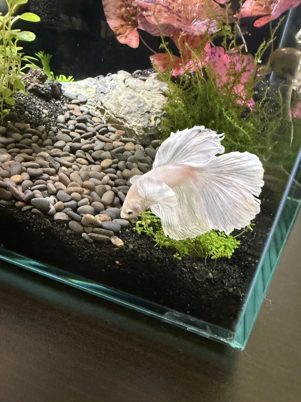 I’m so happy with my betta :)) He’s so healthy and his fins look so pretty like a flower. Beautiful betta ☺️🤍