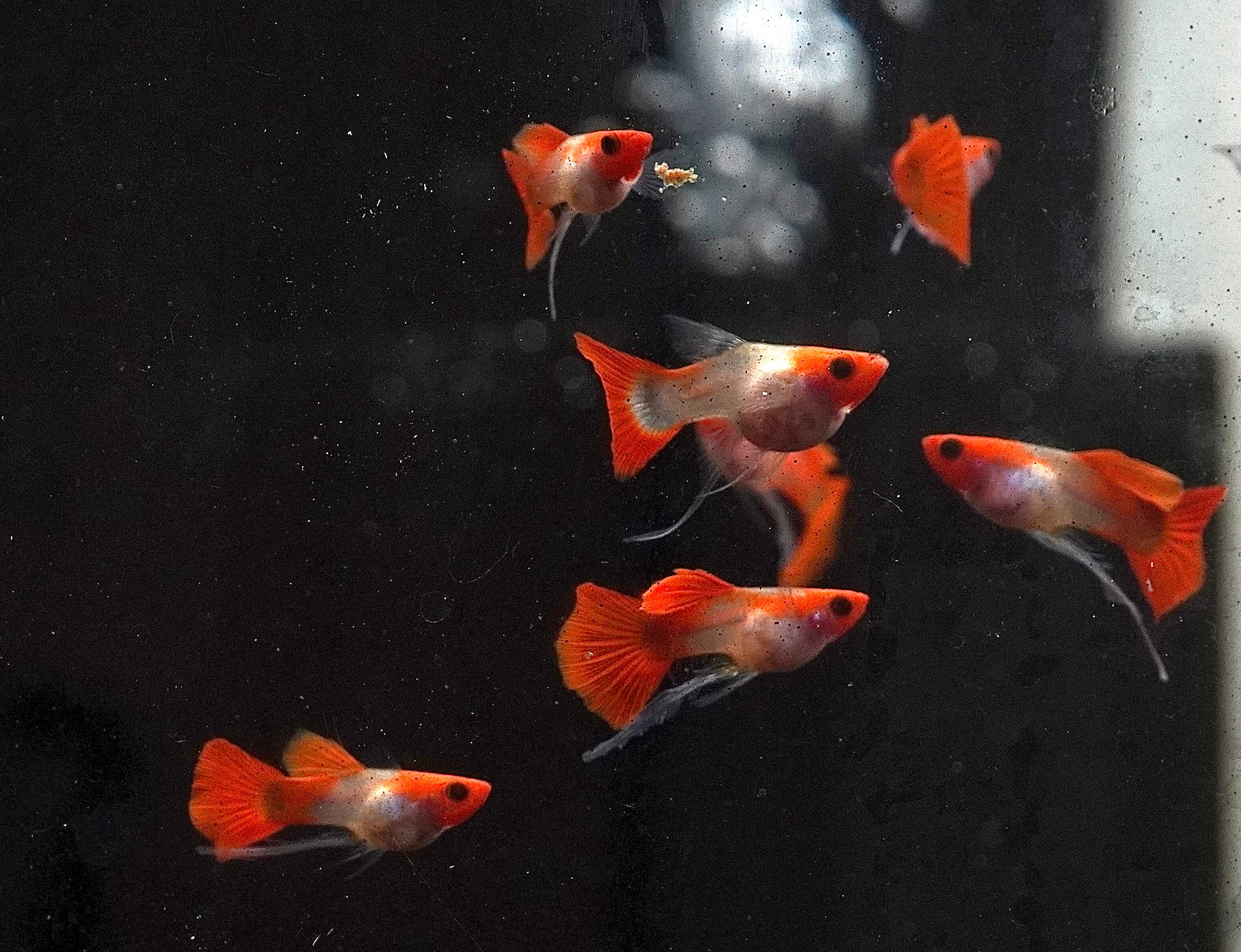 They look beautiful and healthy. They are exploring the tank and interacting with each other