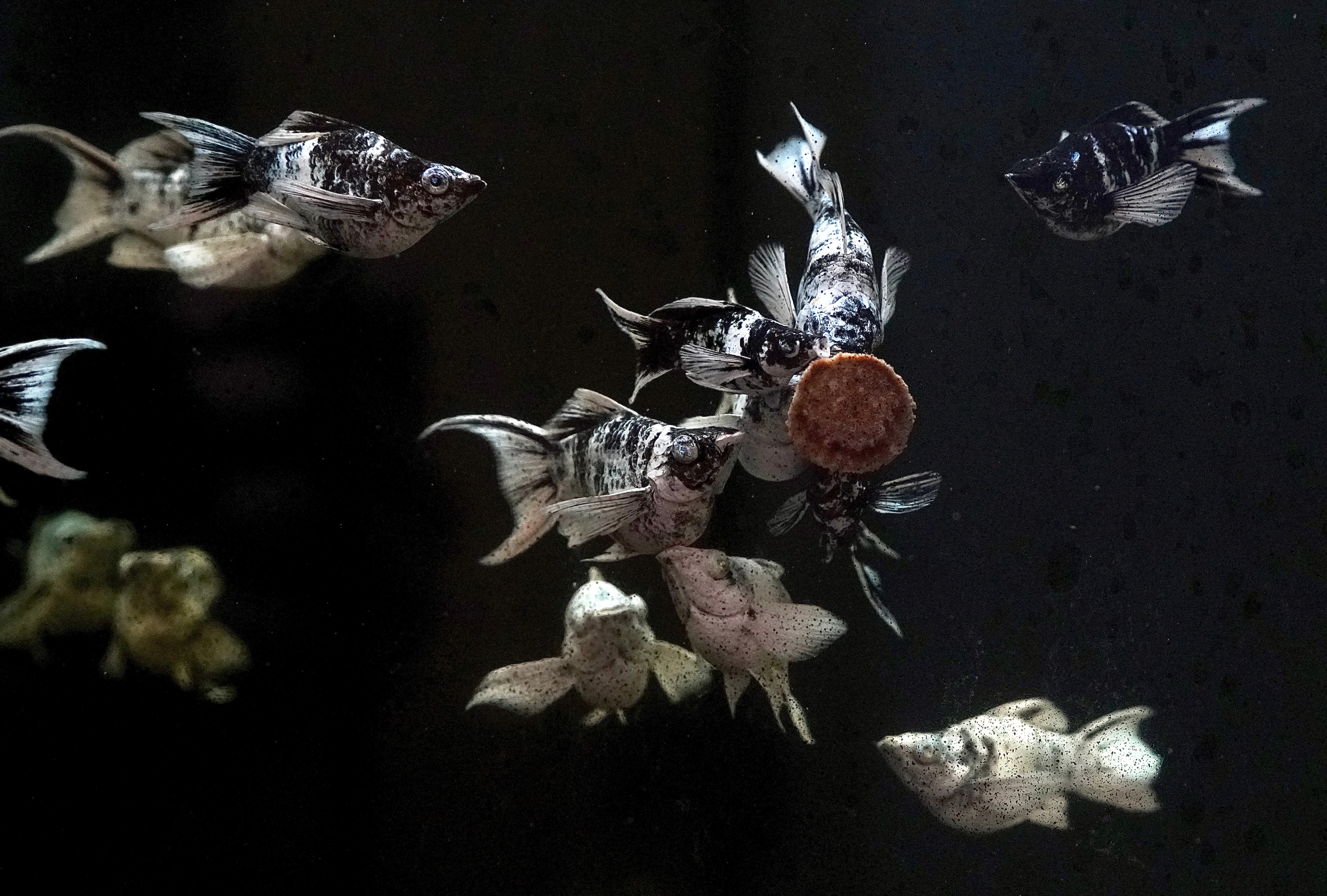 Meet the stunning Marble/Dalmatian/ Zebra Balloon Molly – the perfect addition to elevate your freshwater aquarium! With its dazzling platinum body and captivating blue or diamond-like eyes, this fish brings a touch of elegance and shimmer to your tank. Its unique "balloon" body shape adds charm, making it a true standout among other tankmates.