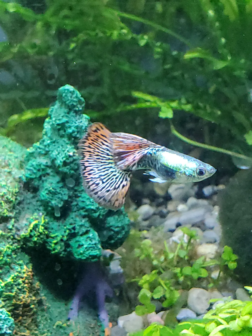 Explore our beautiful collection of Platinum Indo Dragon Ribbon Guppies. These guppies are admired for their long, skirt-like fins that add a touch of elegance and enhance their beauty. Their stunning skin and appealing look make them a favorite among fish enthusiasts.
